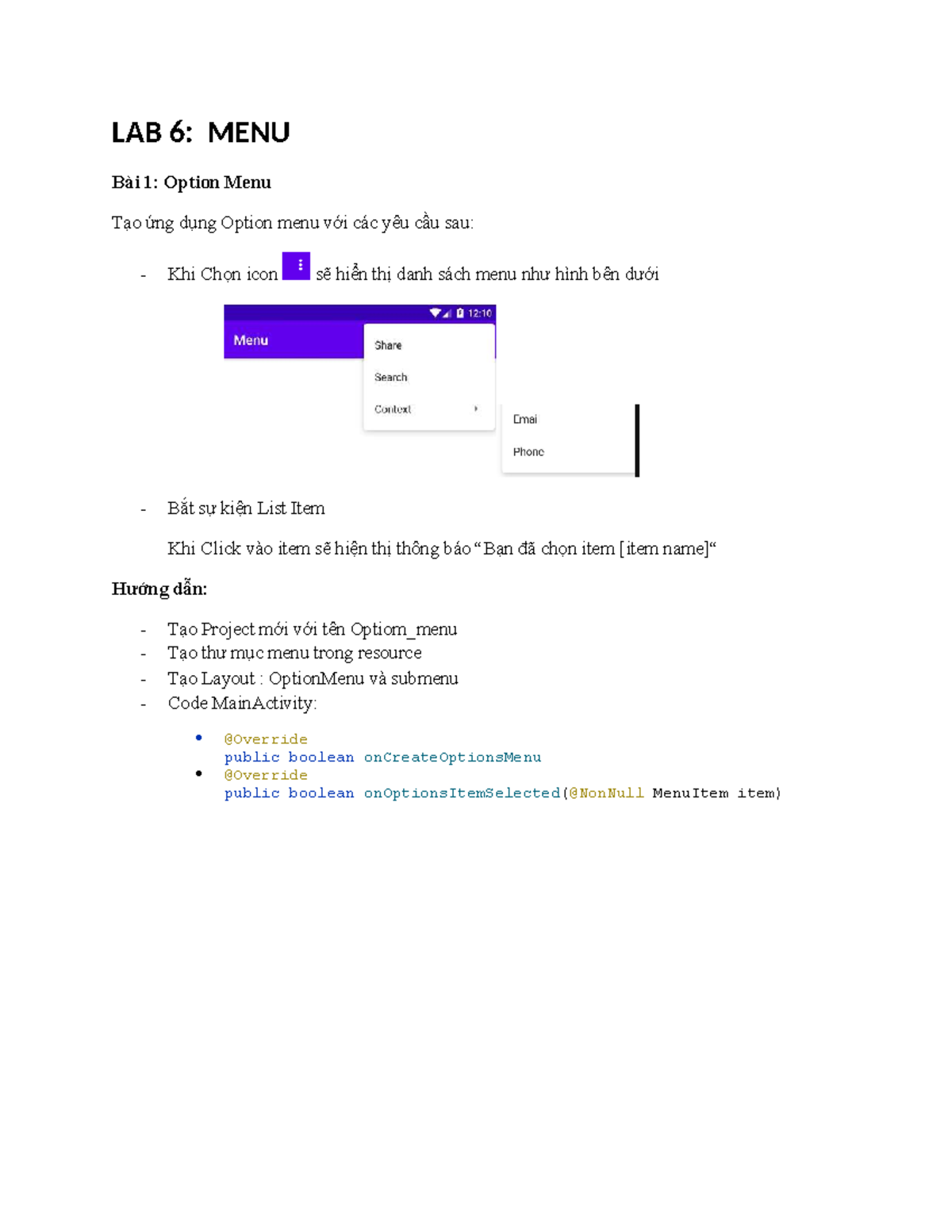 LAB 6: Option Menu & Popup Menu Implementation Guide - Studocu