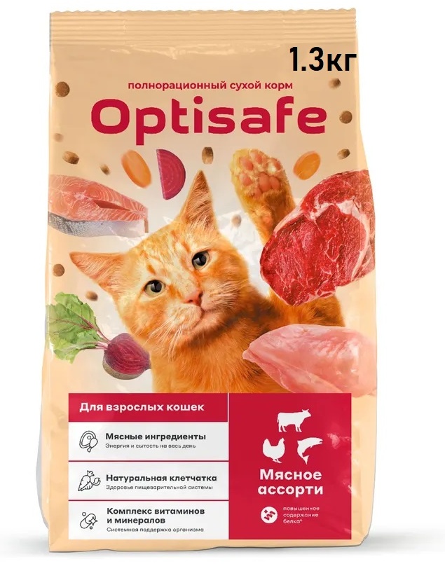 Купить Корм Optisafe для взрослых мясное ассорти 1.3 кг в Алматы ...