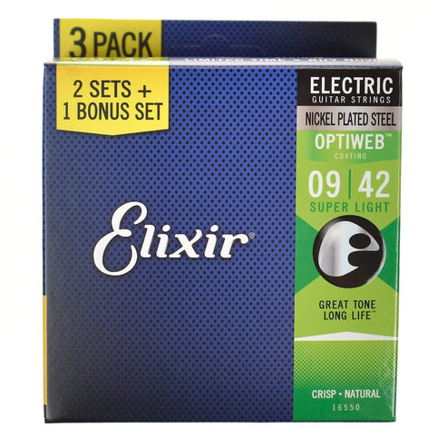Elixir 16550 Electric Optiweb Guitar Strings Super Light 9-42 3-Pack ...