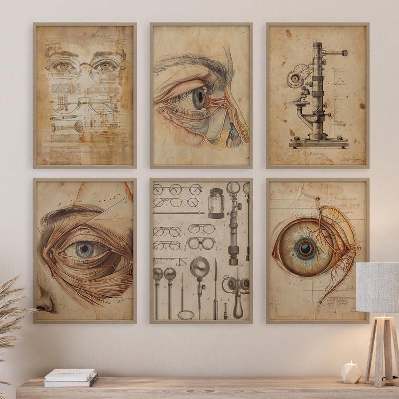 Set 6 Optometry Poster Optician Gift Ophthalmology Artwork Medical Wall ...