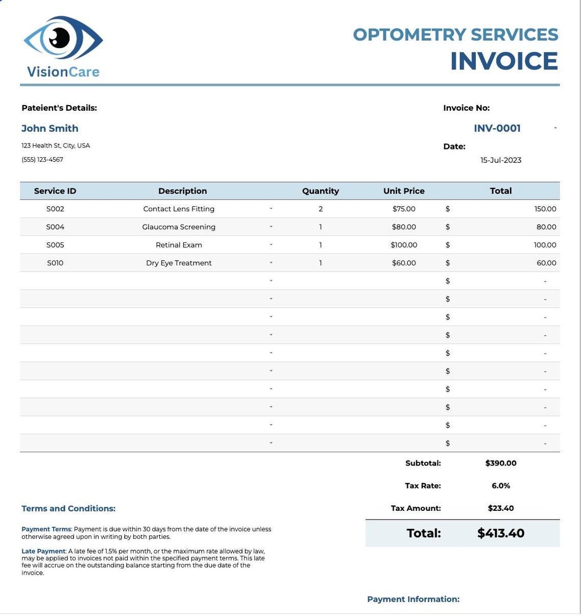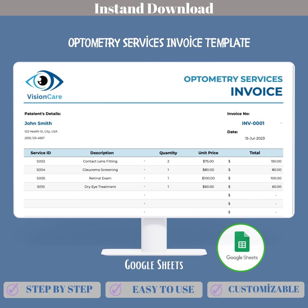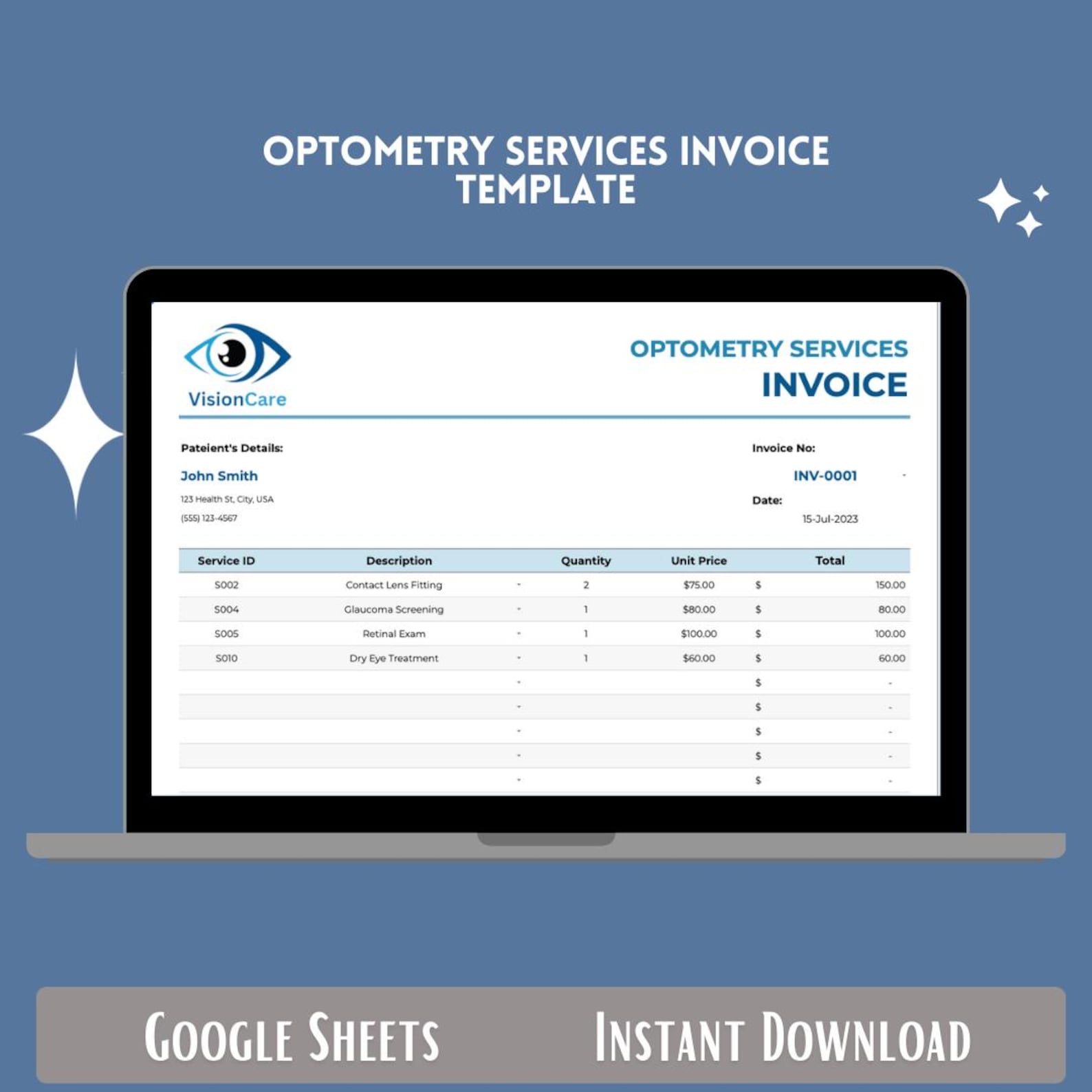 Optometry Services Invoice Google Sheets Template, Editable Vision Care ...