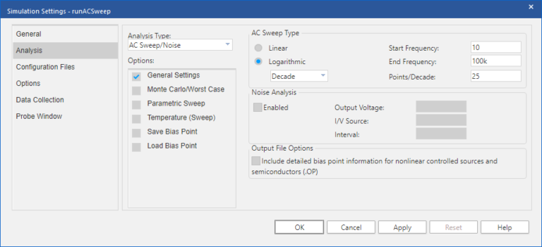 Simulation settings in OrCAD/Spice. | Download Scientific Diagram