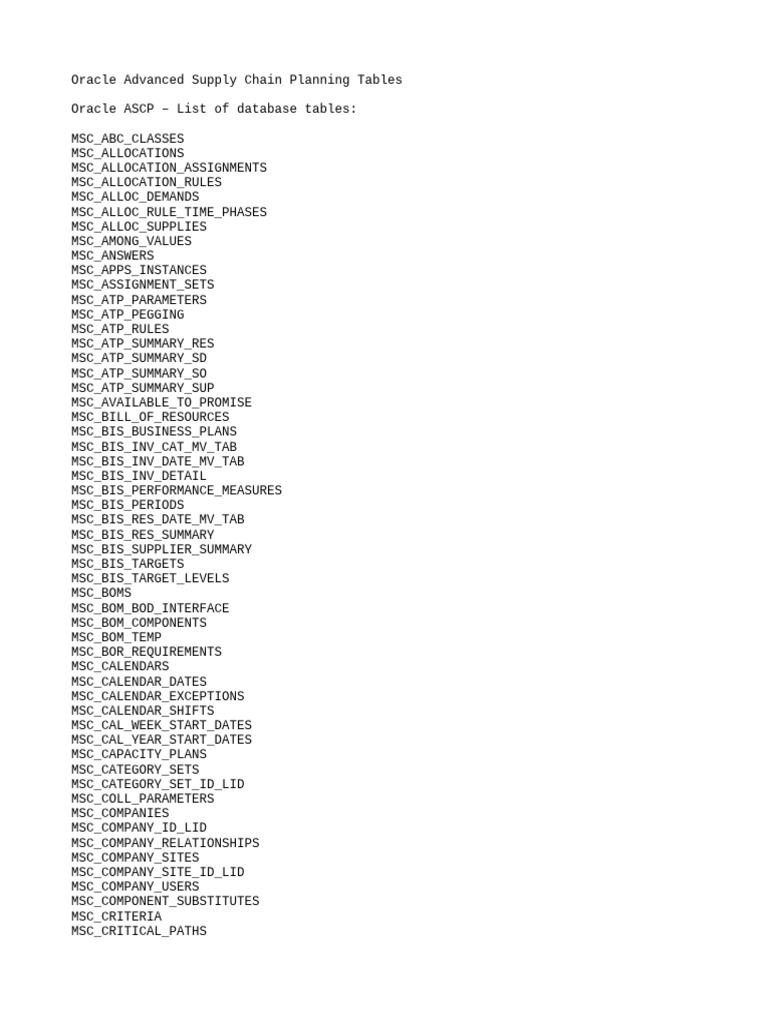 Oracle Advanced Supply Chain Planning Ascp Tables Views ...