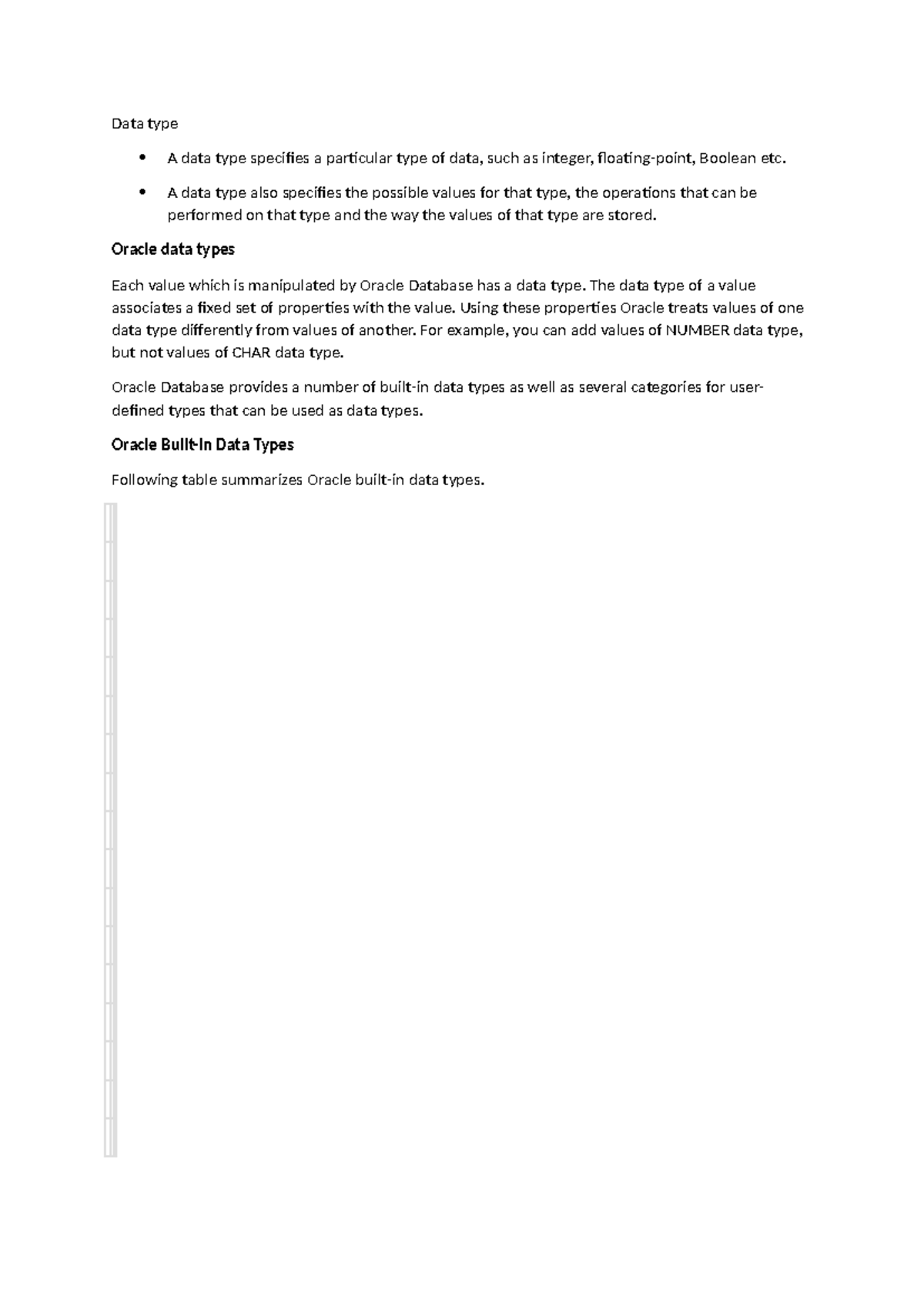 Oracle Database Data Types Overview - Database Administration - Studocu