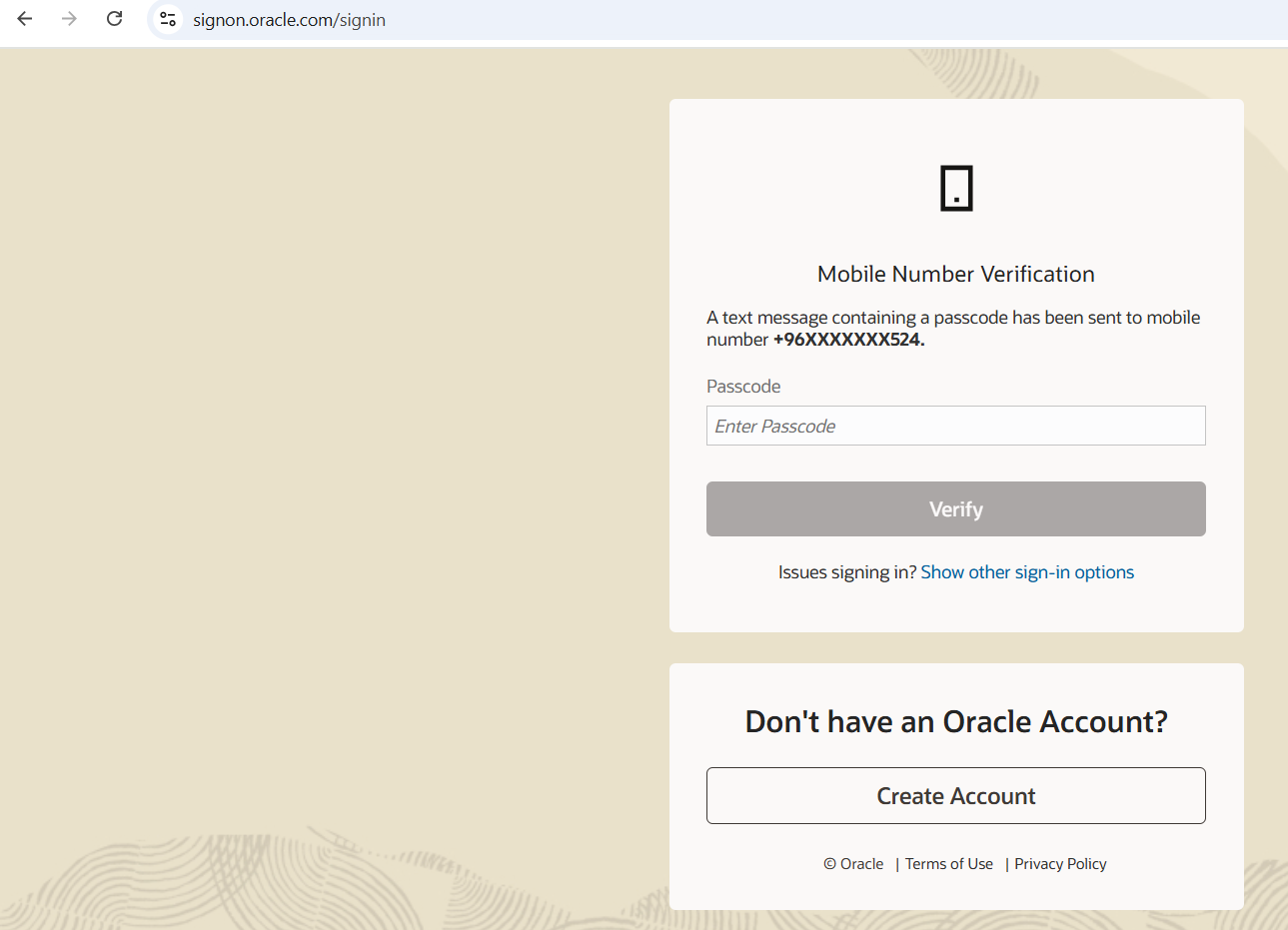 Receiving SMS for Oracle Support Login — oracle-mosc