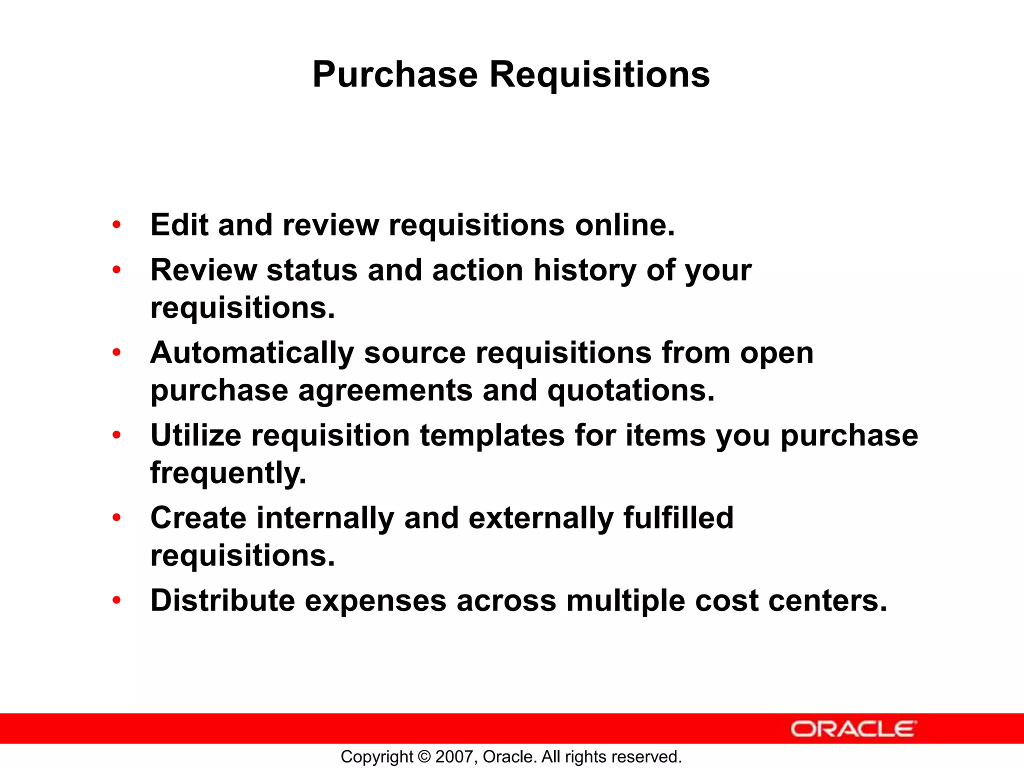 R12 EBS ORACLE PURCHASE OVERVIEW AND FEATURES AND FUNCTION | PPTX