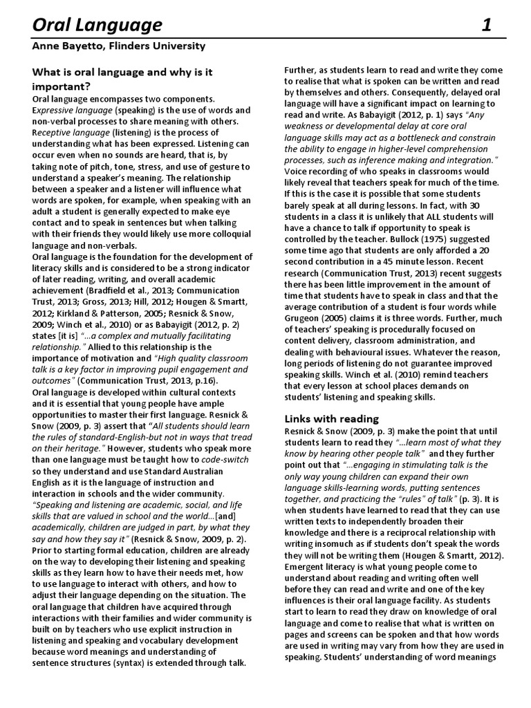 (PDF) Oral Language Development