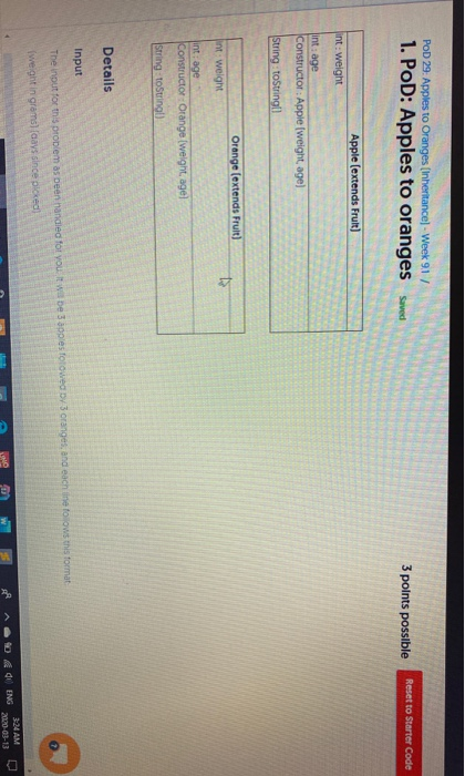 Solved POD 29. Apples to Oranges (Inheritance) - Week 91/ 1. | Chegg.com