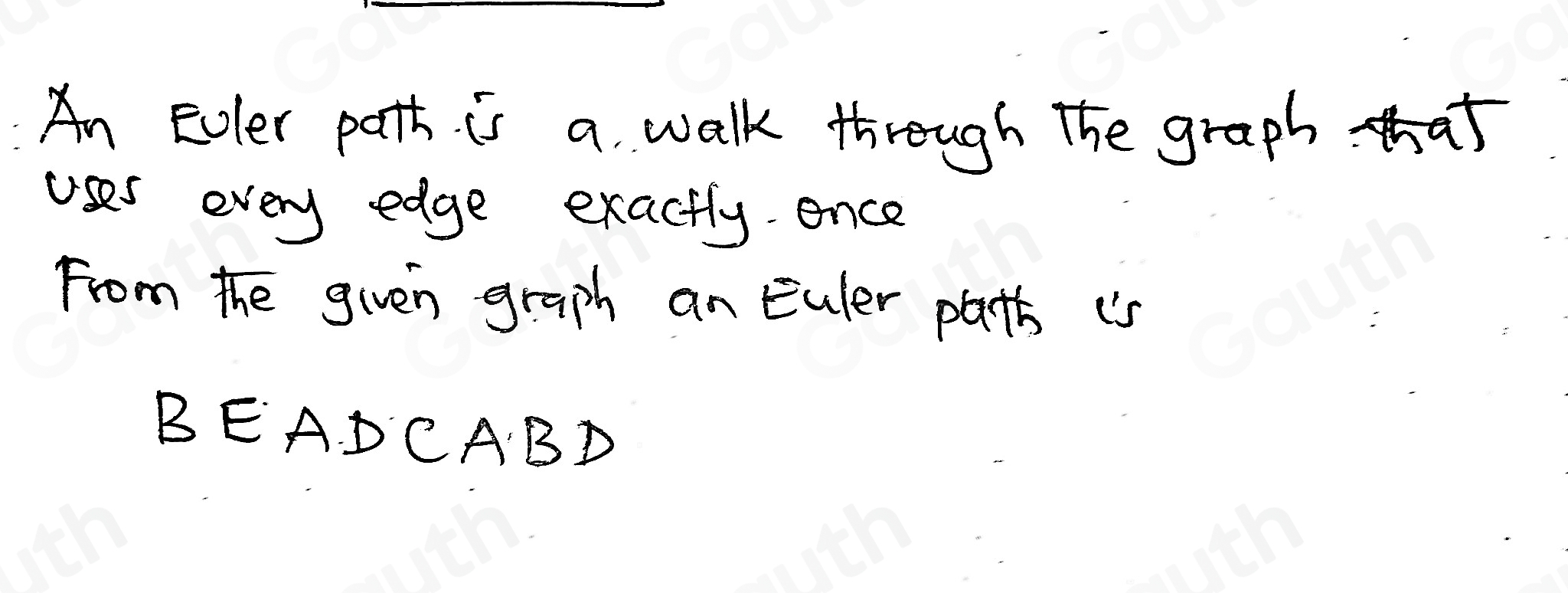 Solved: find an Euler path for the graph. Enter your response as a ...
