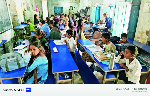 Despite orders, the school continues to function in a dilapidated building.