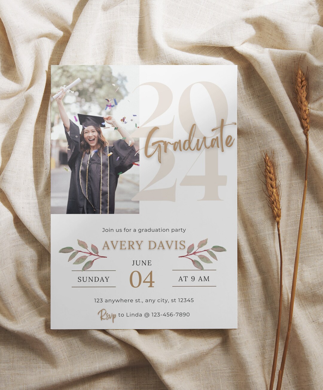 Editable Graduation Party Invitation, Elegant Modern Graduation Invite ...