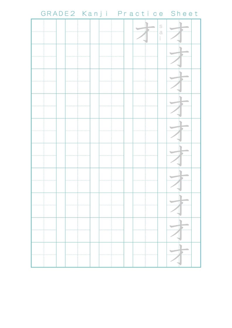 Kanji “才” Writing Practice Stroke Order Worksheet Grade 2 Japanese ...