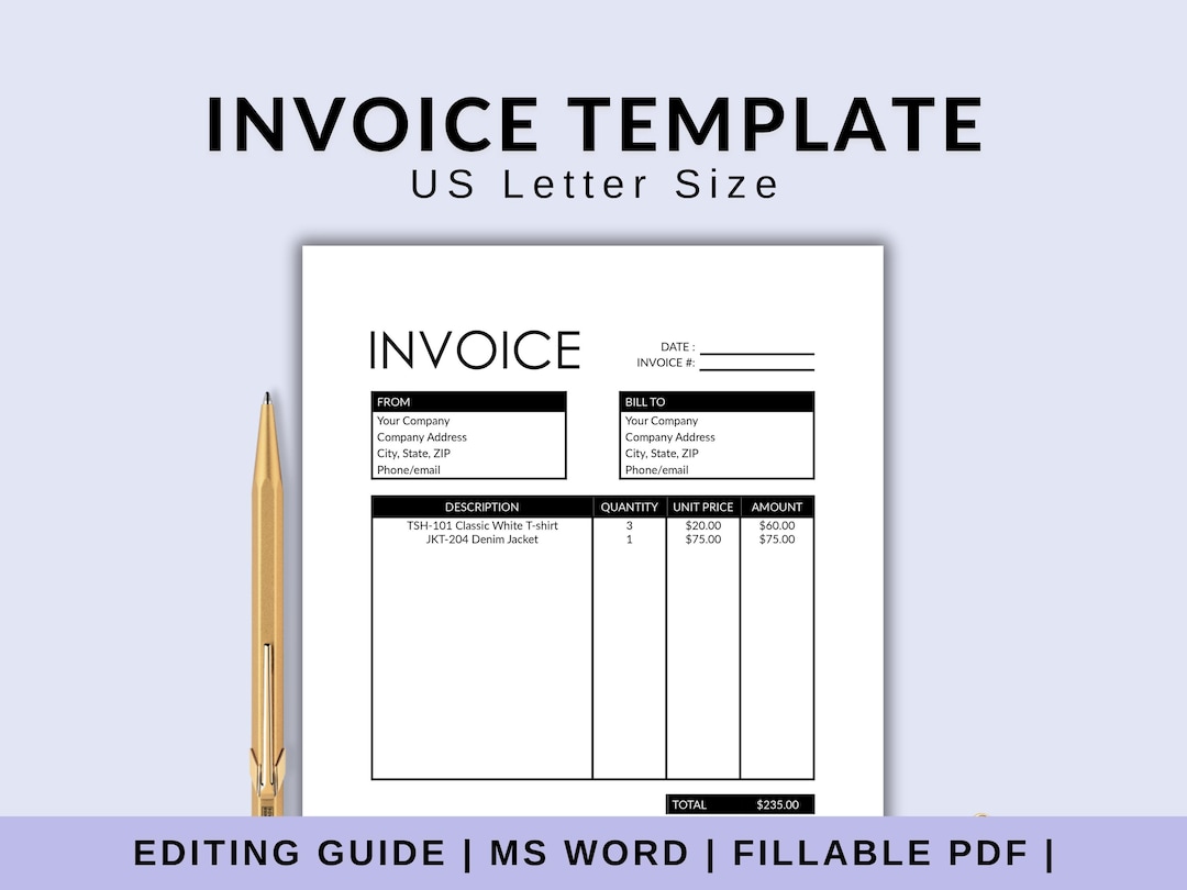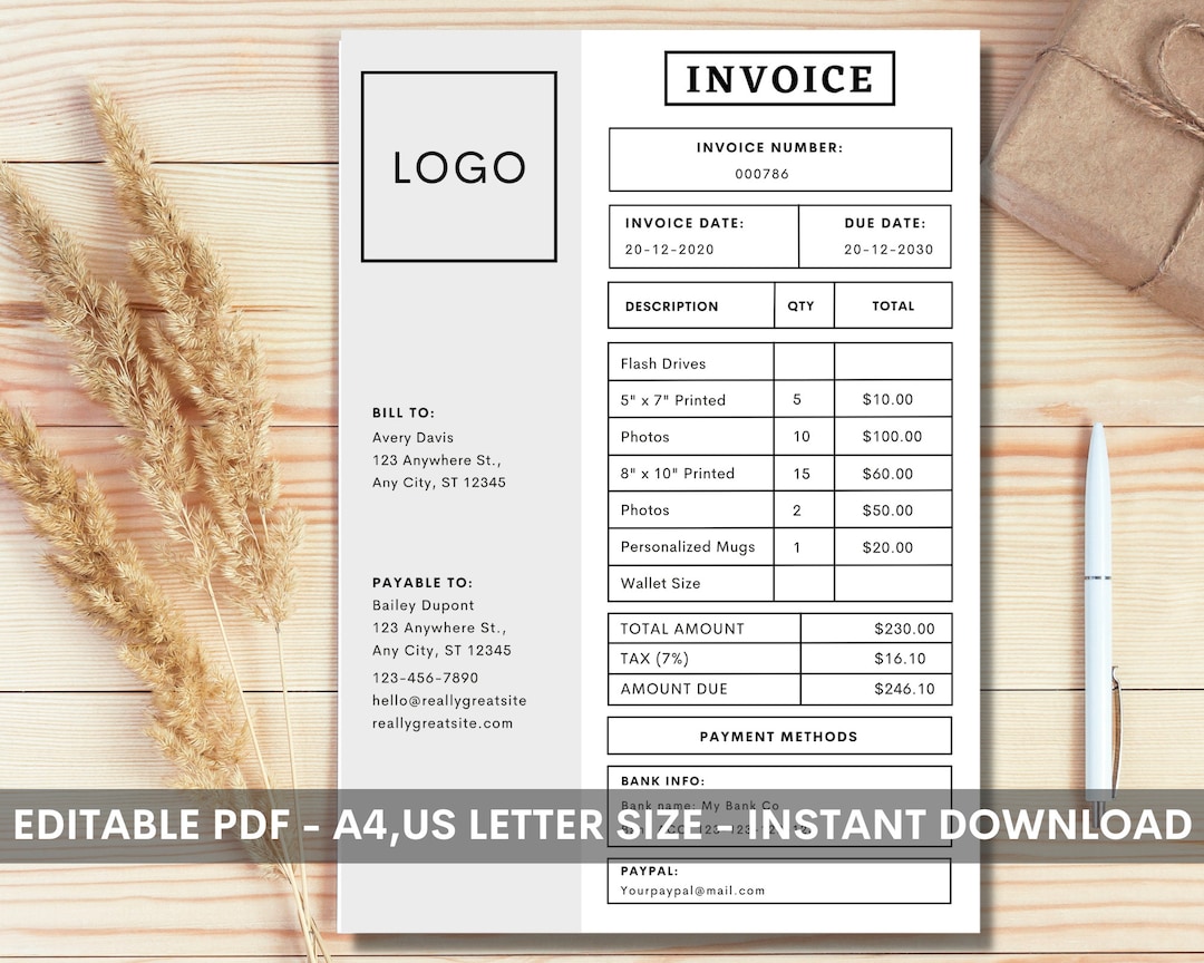 Invoice Template - Printable Invoice - Editable Invoice - Receipt ...