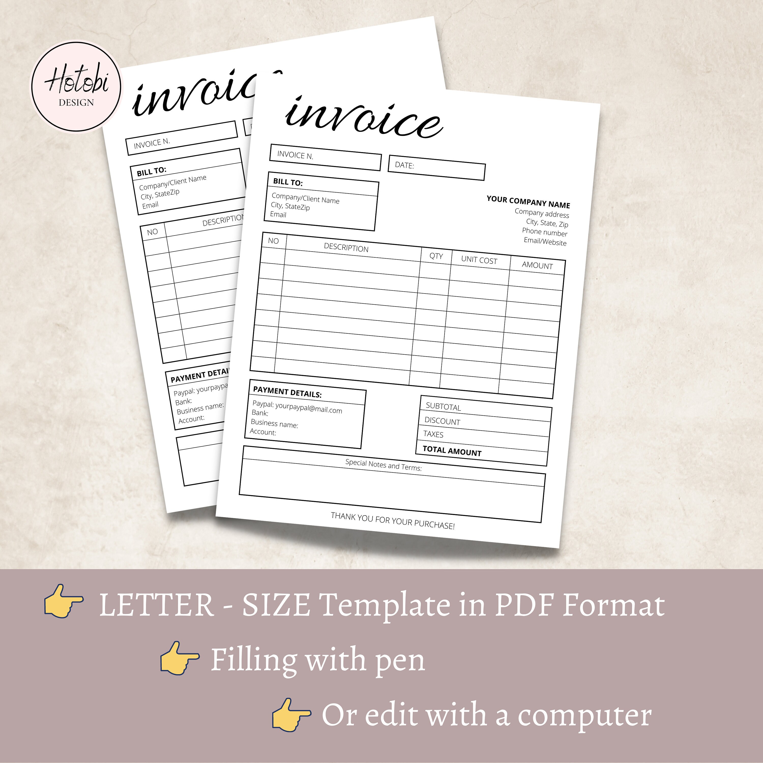 SIMPLE INVOICE TEMPLATE Custom Order Forms Editable - Etsy