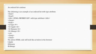 PPT - HTML - Lists PowerPoint Presentation, free download - ID:4502216