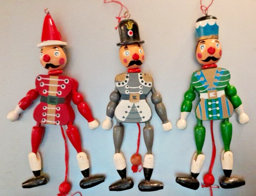 Toy Soldiers Wooden Jumping Jack Pull String Holiday Ornaments Lot of 3 ...