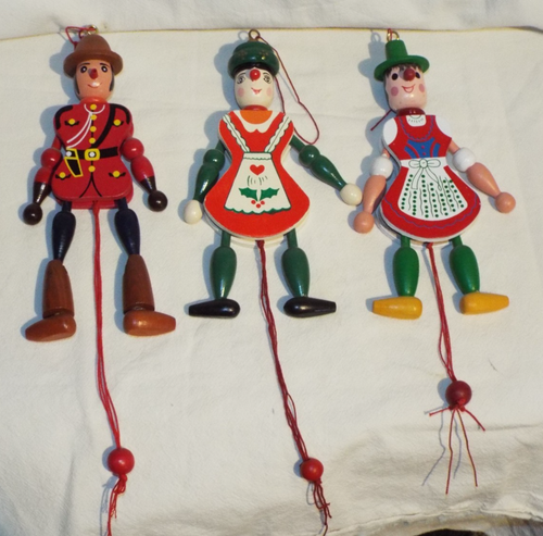 Two Vintage 1960's Pull String Puppets Wooden Toys Ornaments Hand ...