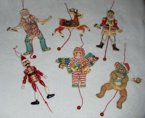 LOT OF 8 HARD CARDBOARD CHRISTMAS ORNAMENTS, PULL STRING, ROCKWELL ...