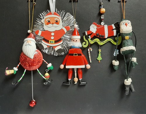 Lot of 5 Santa Claus Christmas Ornaments Pull-String, Resin, Metal ...