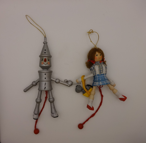 wooden WIZARD OF OZ Christmas ornaments DOROTHY / TIN MAN pull-string ...
