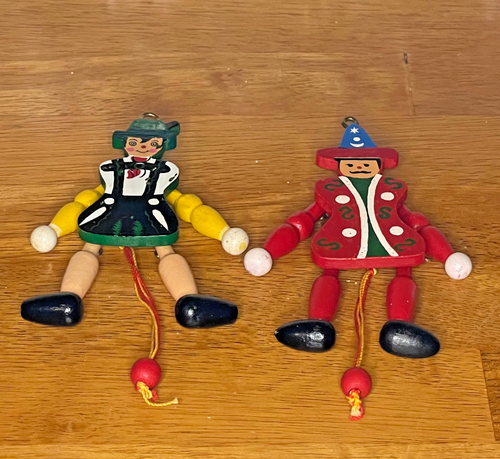 Vintage Pair Wood Pinocchio Pull String Puppet Jumping Jack Christmas ...