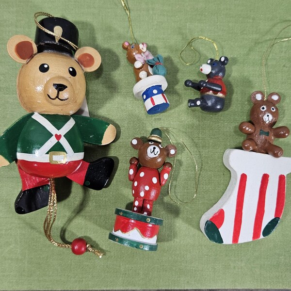 Vintage Wood Bear Santa Christmas Ornaments Pull String Jumping Jack - Etsy