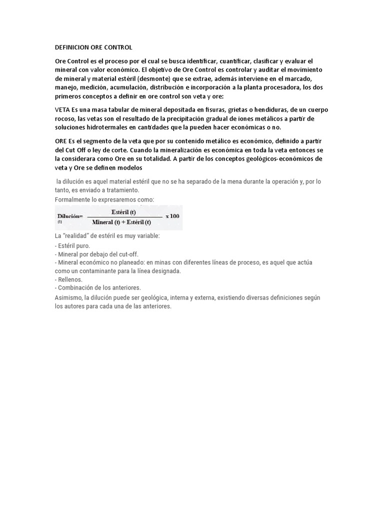 Control de Ore en Minería: Definición y Proceso | PDF | Agua ...