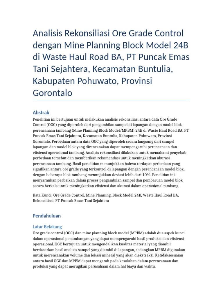 Rekonsiliasi Ore Grade Control | PDF