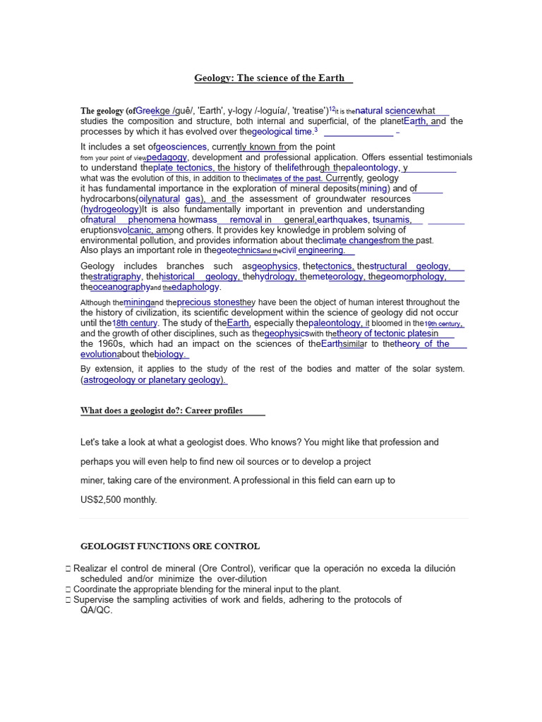 Functions of an Ore Control Geologist | PDF | Geology | Earth Sciences