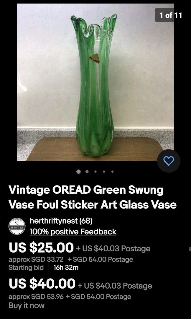 Vintage collectible Made in Japan OREAD mouth blown art glass vase ...