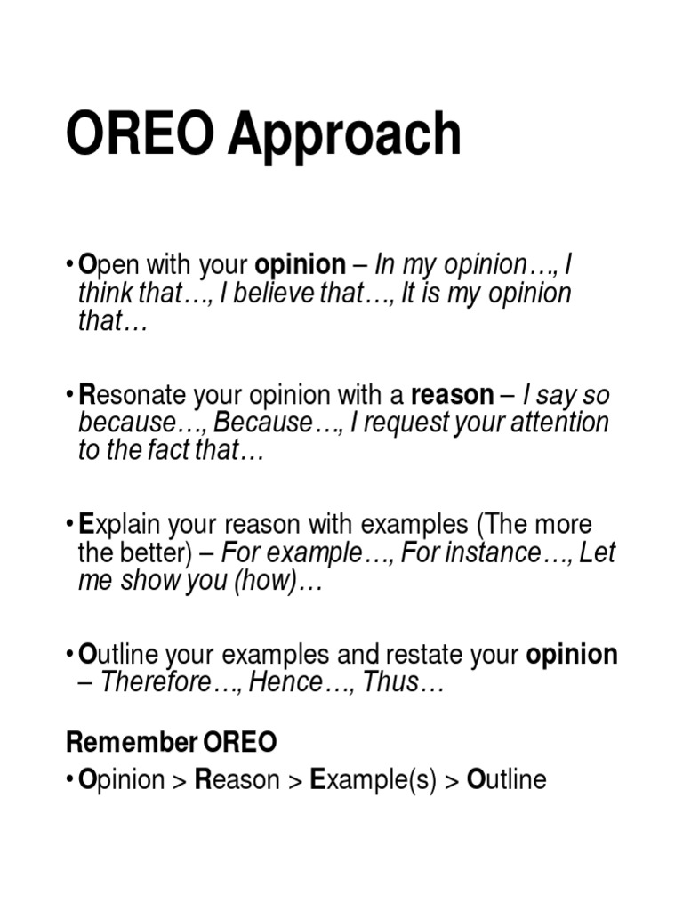 OREO Method of Persuasive Writing by H Ramsey on Prezi