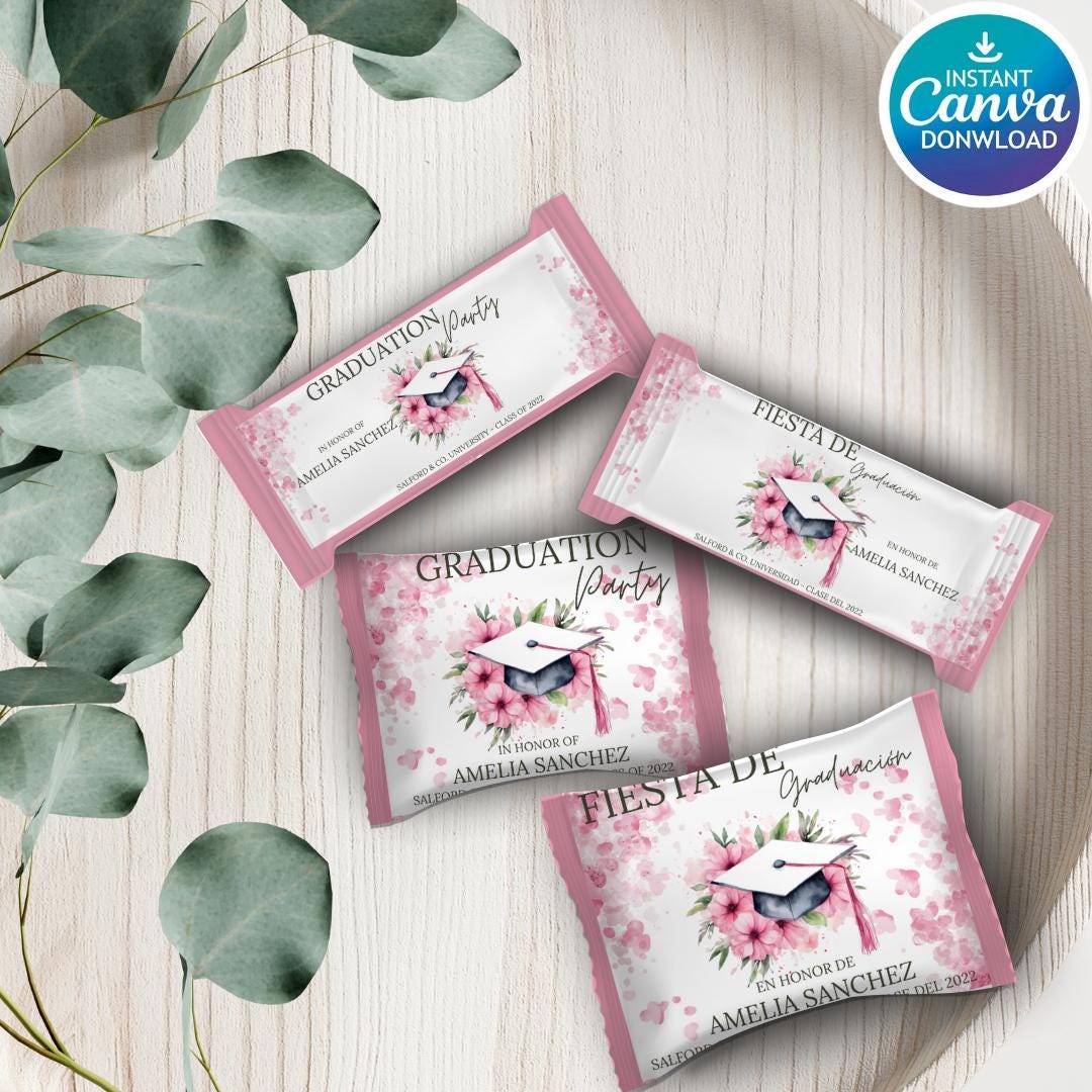 Mini Oreo Wrapper Pink Flower Graduation Party, Personalized Mini Oreo ...