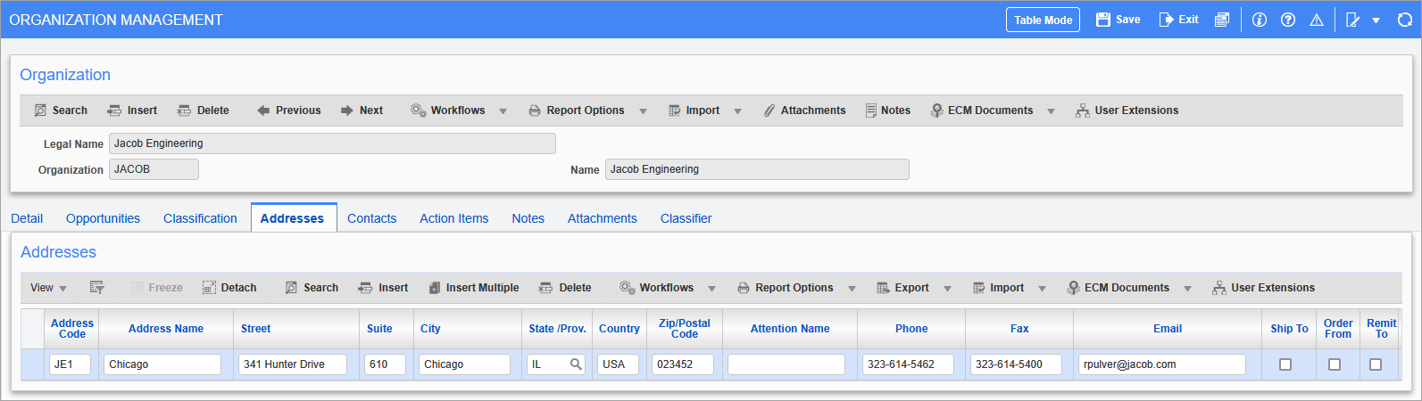 Opportunity Management - Organization - Addresses - Tab