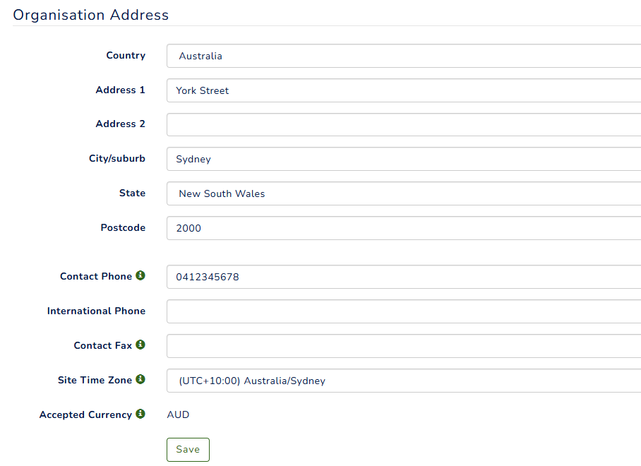 Site and Organisation Settings