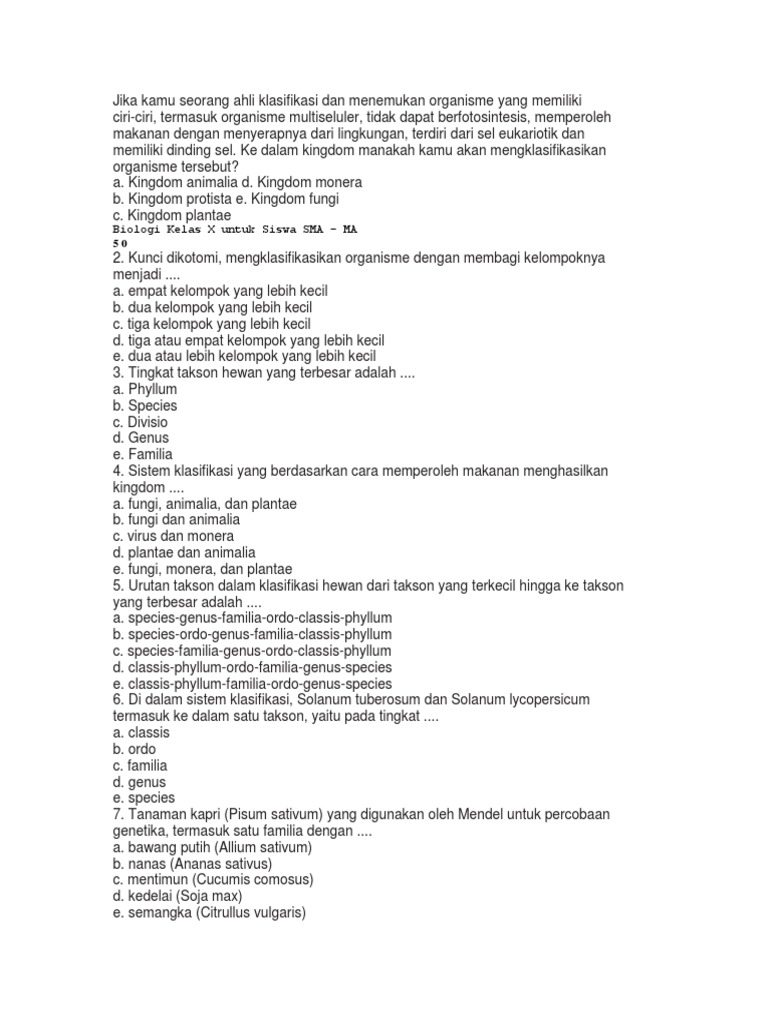 Klasifikasi Organisme Multiseluler | PDF