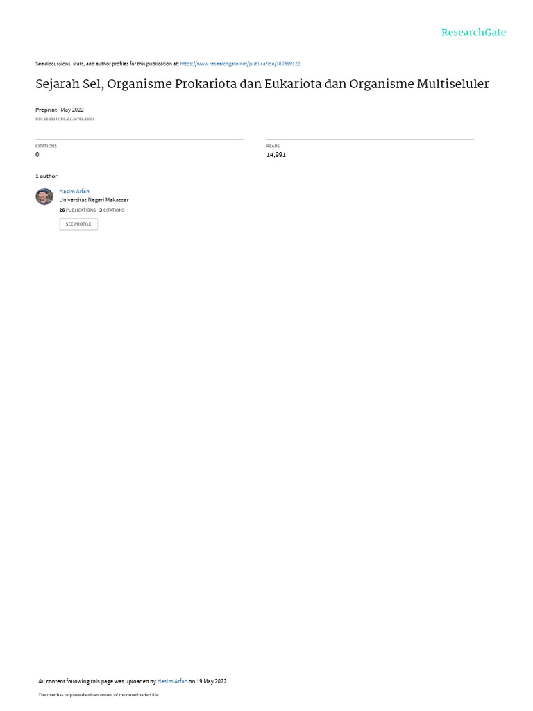 (PDF) Sejarah Sel, Organisme Prokariota dan Eukariota dan Organisme ...