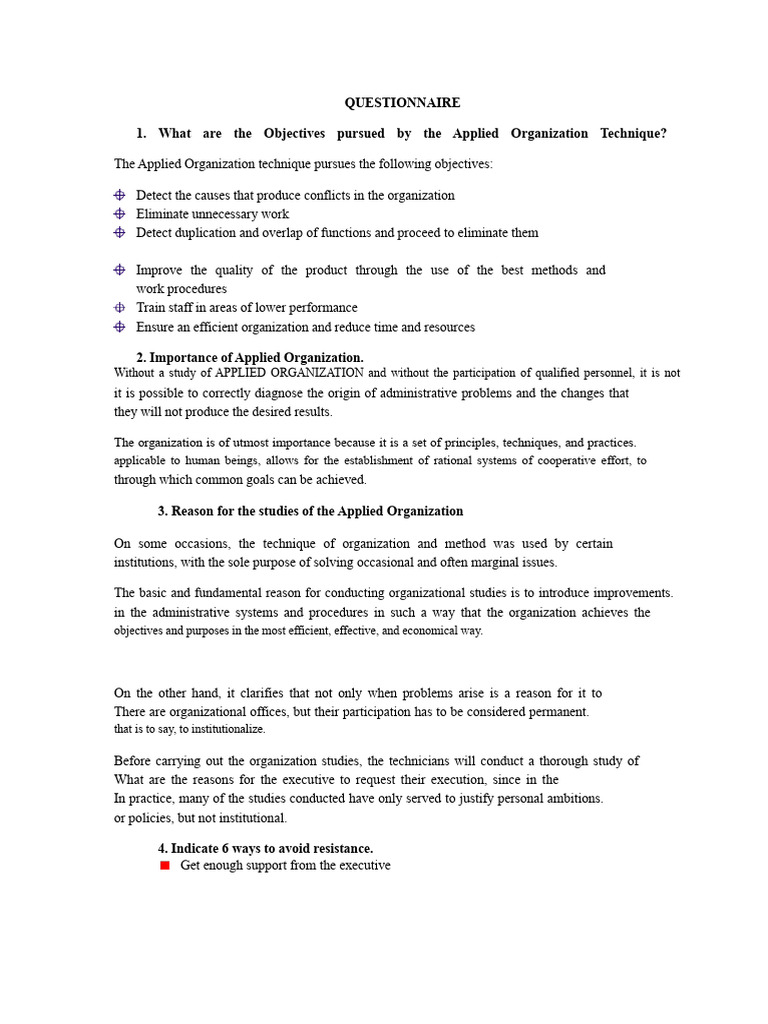 ORGANIZATIONAL MANAGEMENT QUESTIONNAIRE | PDF | Organizational ...