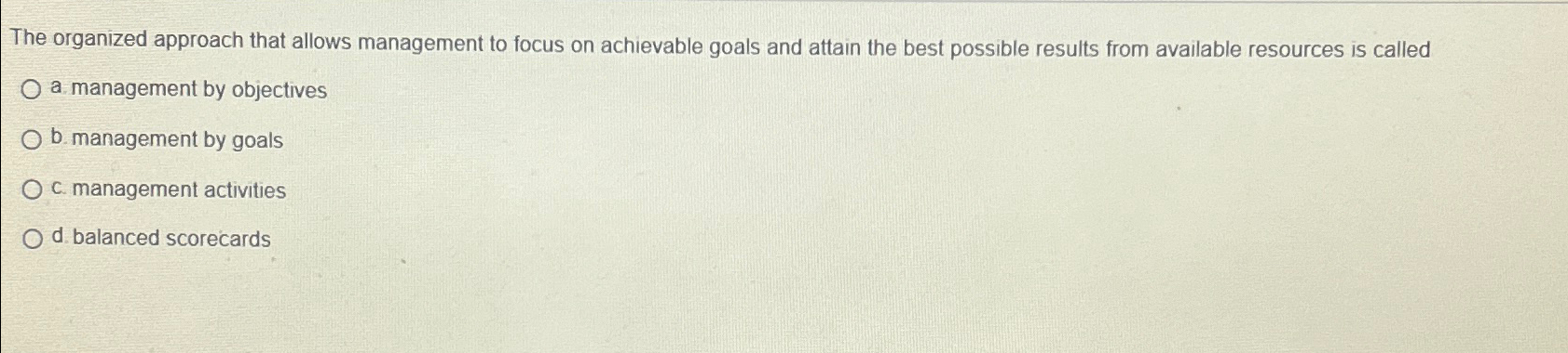 Solved The organized approach that allows management to | Chegg.com