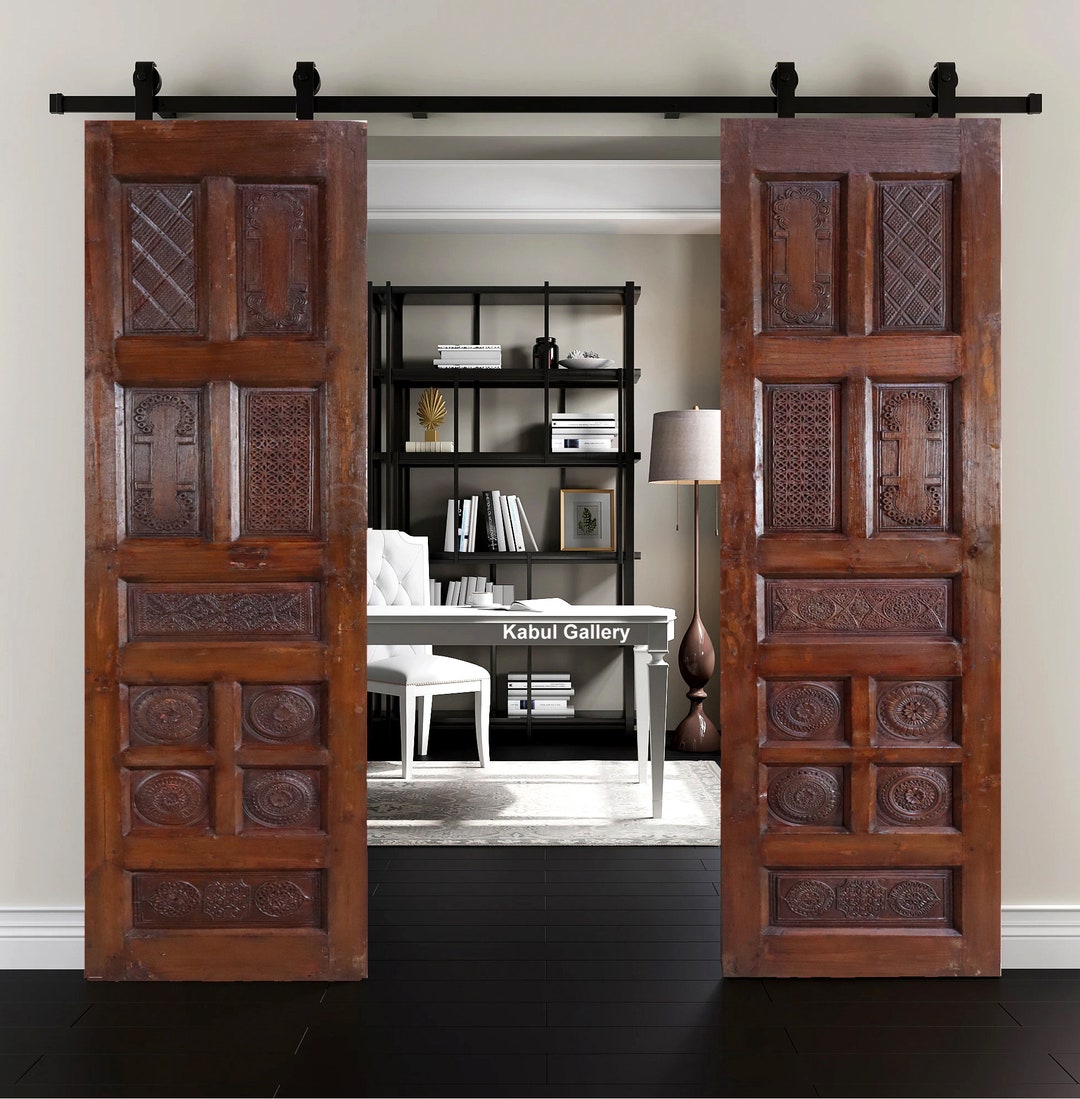 200x100 Cm Vintage Orient Solid Wood Handmade Hand Carved Sliding Door ...