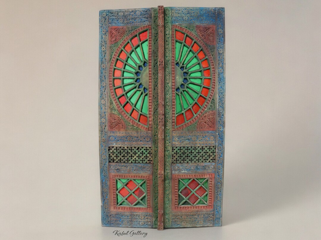 Antique Orient Solid Wood Handmade and Hand Carved Stained Glass Door ...
