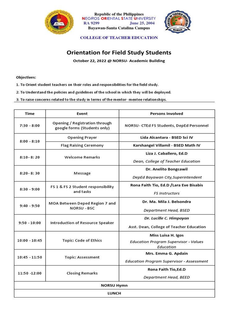 SAMPLE CLASS ORIENTATION FOR COLLEGE STUDENTS | PDF