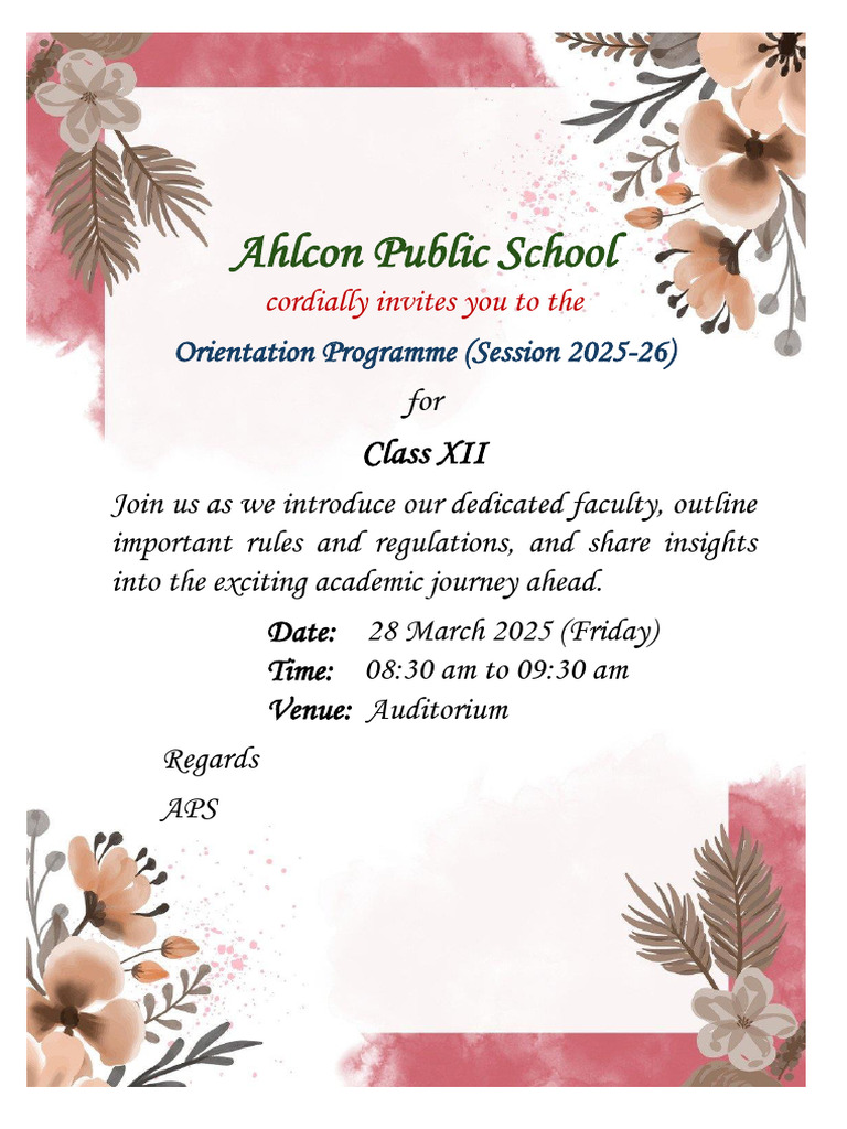 Orientation Invitation Card XII | PDF
