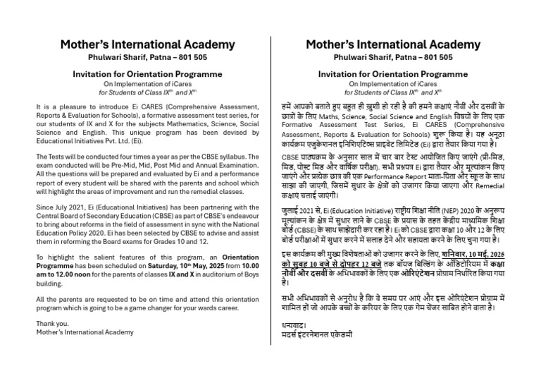 Parent Orientation Programme Invitation | PDF