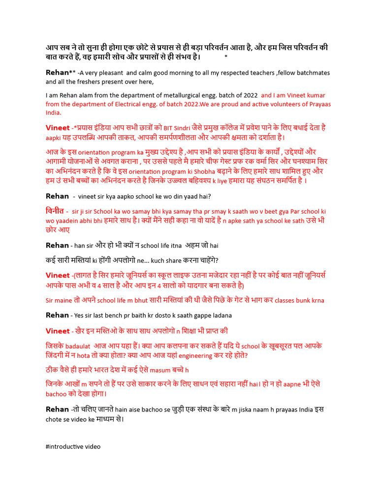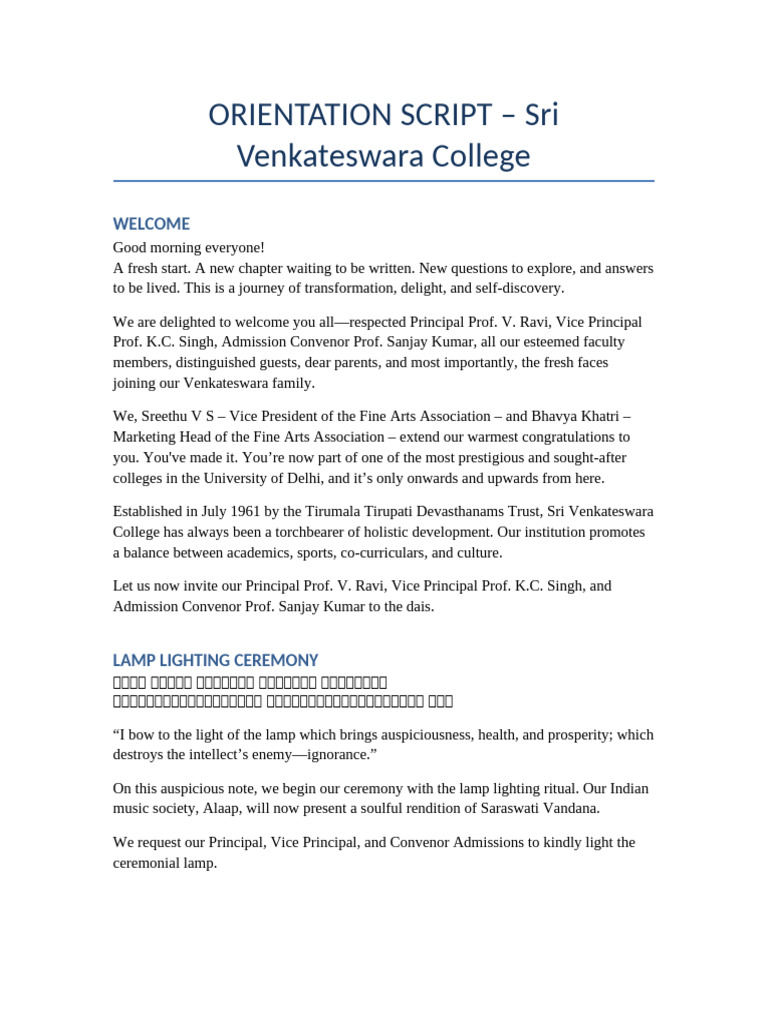 Script For Orientation | PDF