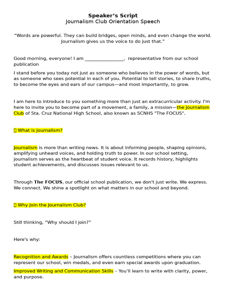 Journalism Orientation Script | PDF | Journalism | Human Communication