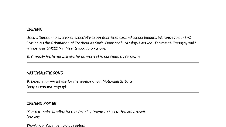 LAC Session Orientation Script for Teachers - EMCEE Notes - Studocu