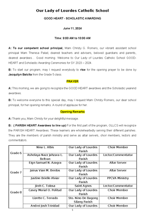 Parent Orientation Anchoring Script 2023 | PDF | Prayer | Gratitude