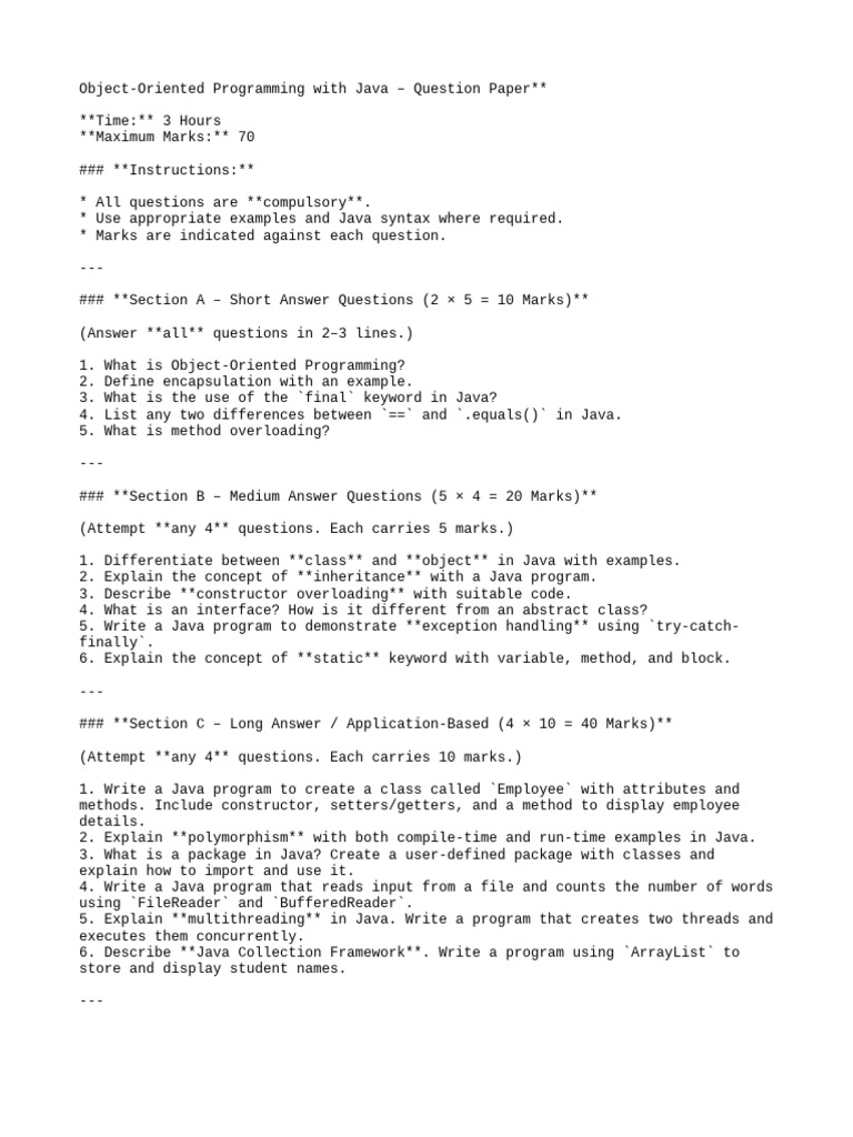 Object Oriented Programming with Java Important Questions BCS403 B.Tech ...