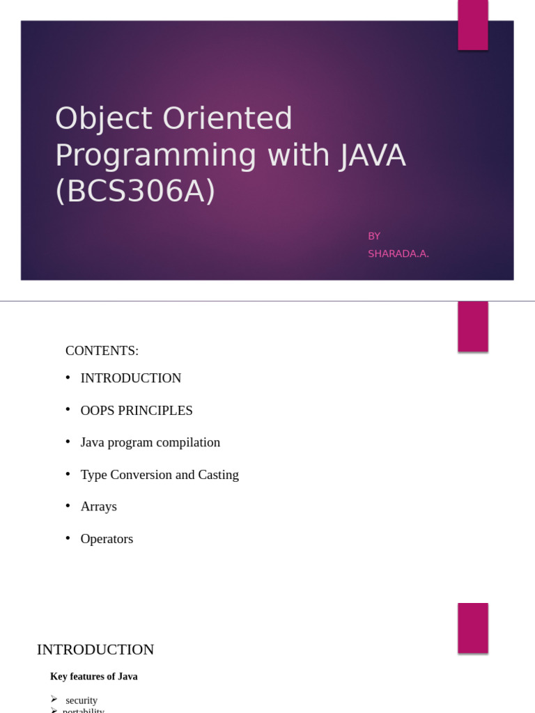 Object-Oriented Programming with Java UNIT 1 | PPTX