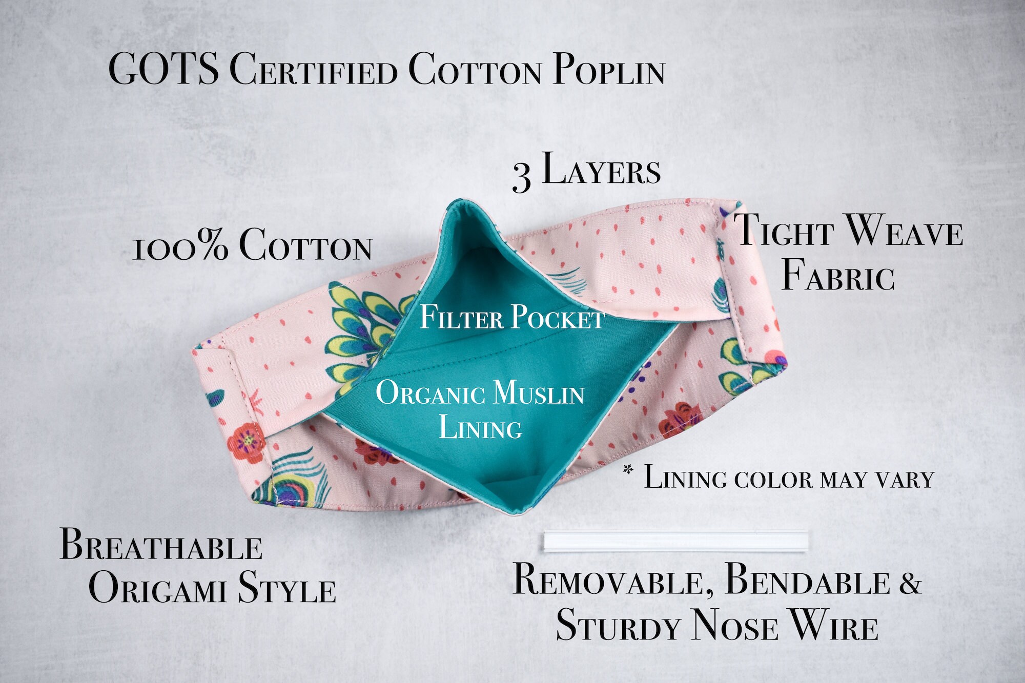 Origami Mask 3 Layer, Origami Mask With Nose Wire, Organic Cotton Face ...